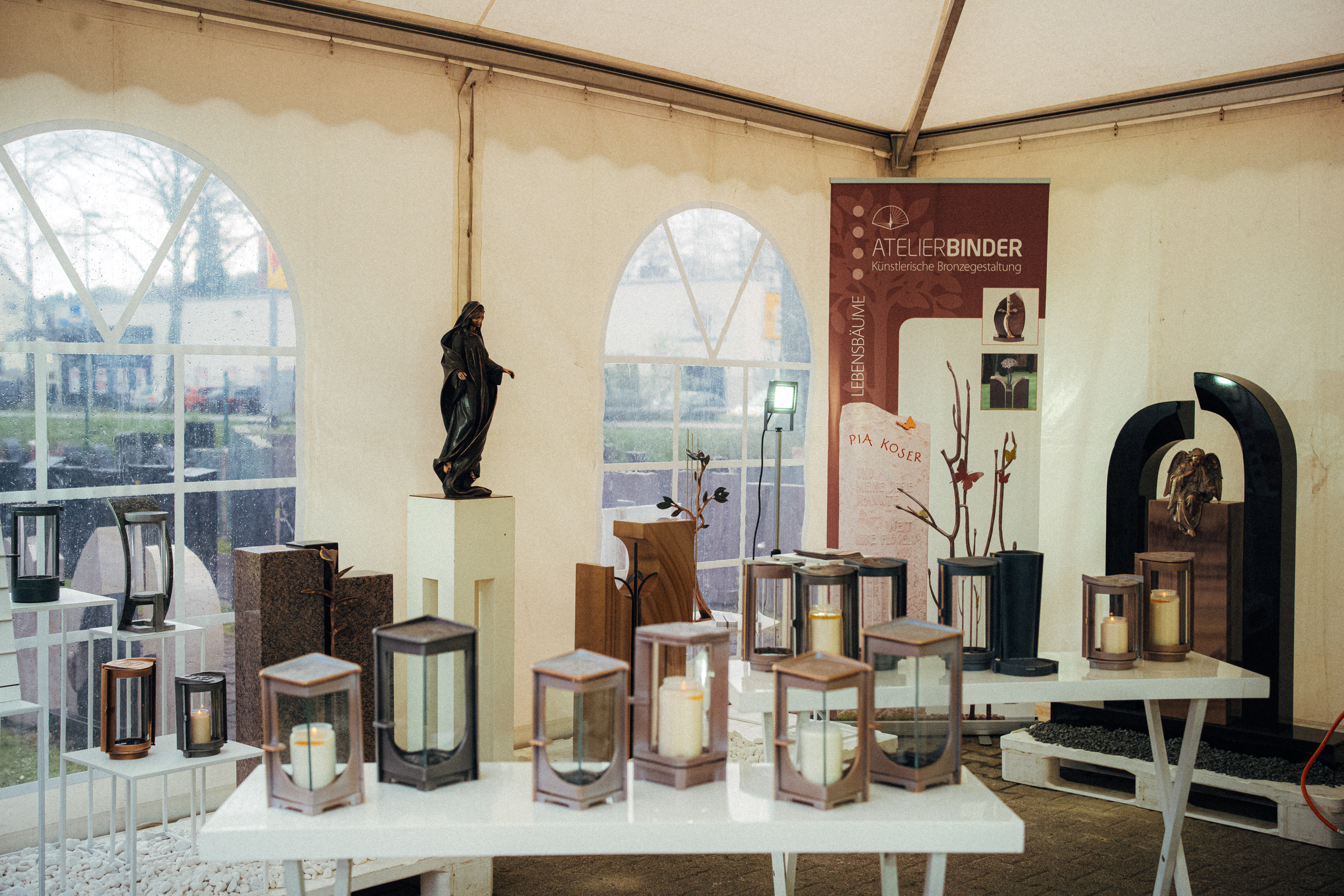 Ein besonderes Augenmerk lag außerdem auf der kunstvollen Grabschmuckausstellung unseres Partnerausstellers Atelier Binder.