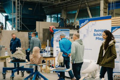 Ein künstlerisches Highlight war die Ausstellung von Steinmetz- und Steinbildhauermeister Florian Weber. Einige seiner Werke waren während der Veranstaltung direkt in unseren Produktionshallen zu sehen und sorgten für Staunen und Gesprächsstoff.