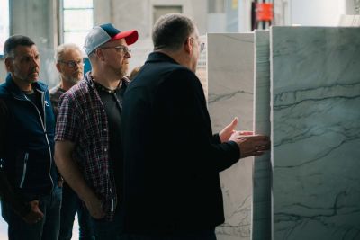 Ergänzt wurde das Programm durch spannende Ausstellungen unserer Partner – mit der Firma König, die ihr umfangreiches Sortiment an Werkzeugen zur Bearbeitung von Naturstein präsentierte. Auch die Firmen Plein mit kunstvollen Bronzearbeiten, Axor mit exklusiven Armaturen, Lithofin mit professionellen Produkten zur Natursteinpflege, Burkhardt-Löffler mit ihrem neuen Kantenautomaten sowie Adler mit digitalen Aufmaßnehmern zeigten ihre neuesten Entwicklungen.