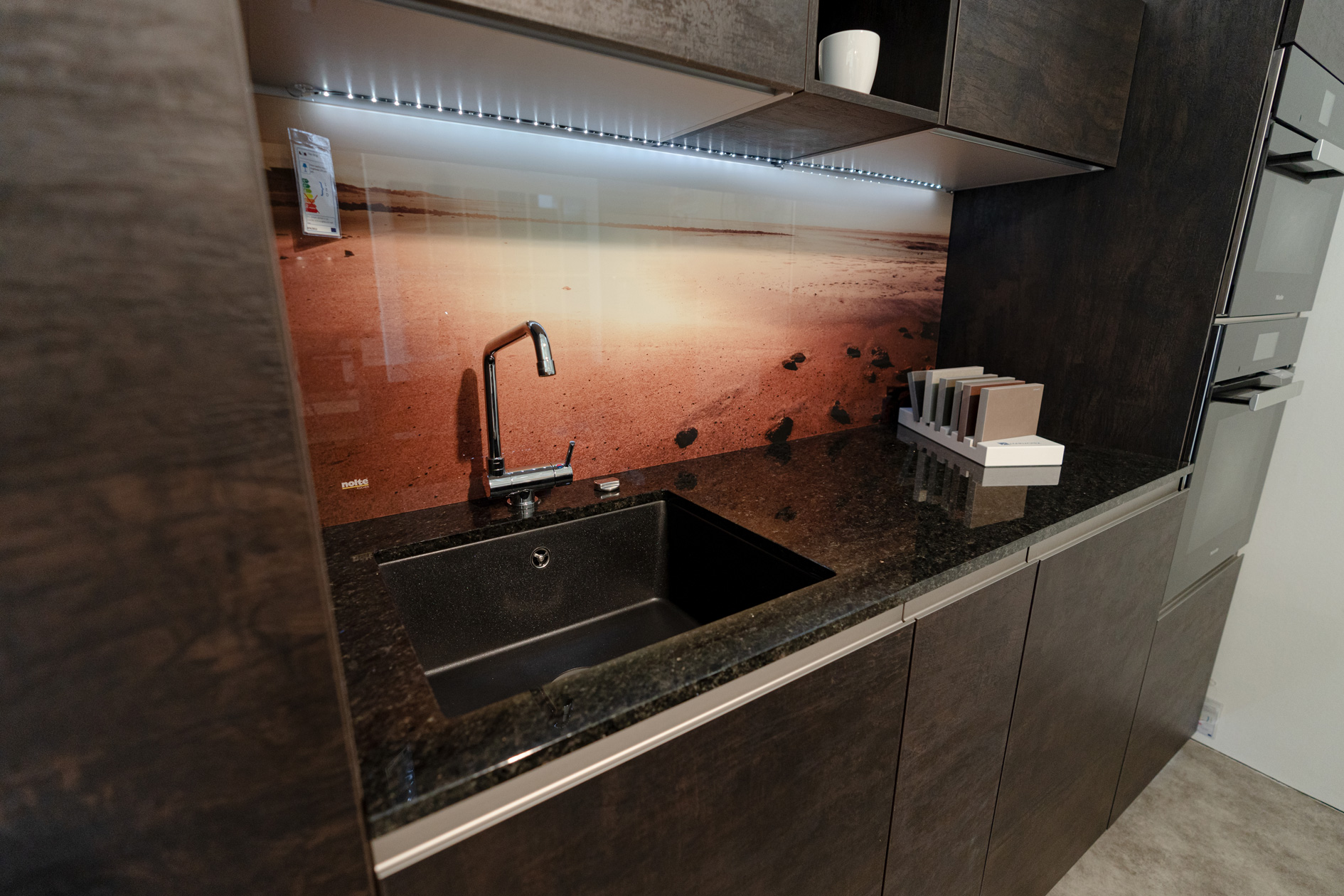 Ausstellungsküche Braun Möbelcenter Freudenstadt, Partnerserie Nagola poliert