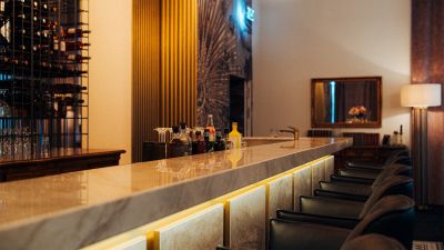 Empfangstheken und Bartresen mit Naturstein-Elementen